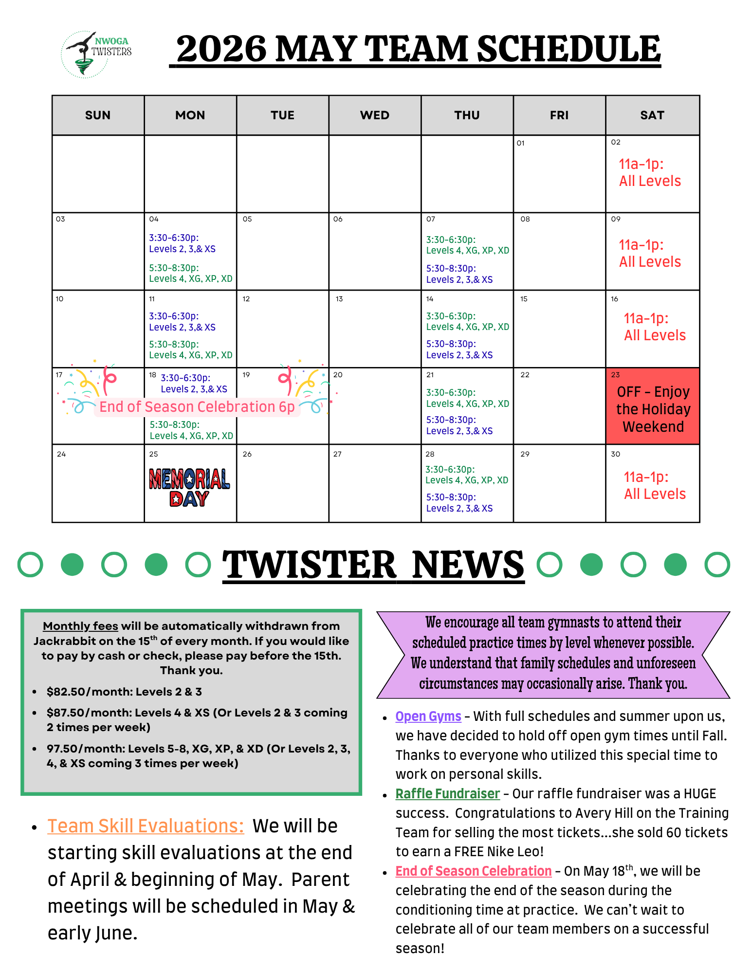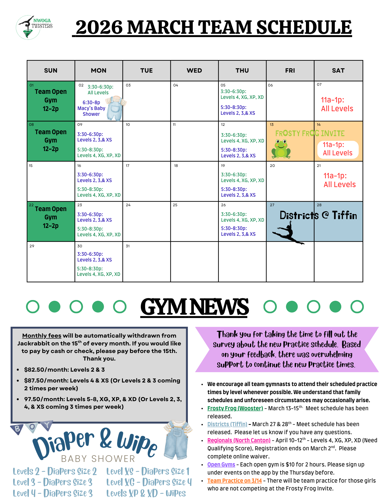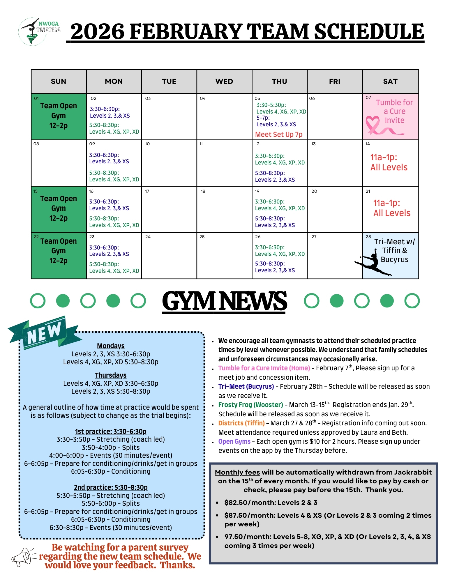 Class and Tumbling Schedules